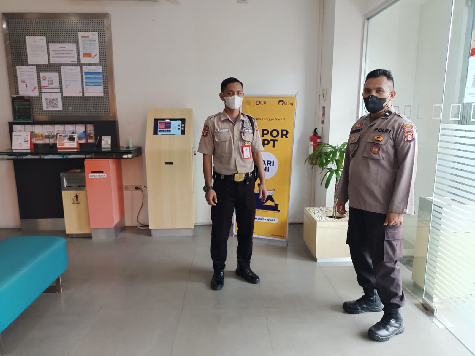 Kali ini Anggota Sat Binmas memberikan himbauan kamtibmas dan Prokes kepada anggota Satpam yang sedang bertugas.
