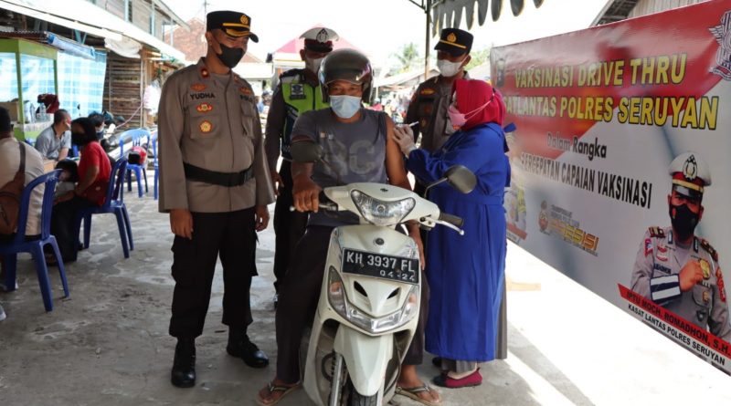 Kapolres Seruyan AKBP Bayu Wicaksono, S.H., S.I.K., M.Si. di wakili Wakapolres Seruyan Kompol Yudha Setiawan, S.H.,S.I.K, mengatakan “Pelaksanaan vaksinasi Drive Thru artinya peserta vaksinasi tidak perlu turun dari kendaraan. Mereka tetap diatas kendaraan masing-masing saat registrasi, screening kesehatan sampai dilakukan penyuntikan vaksin. Kegiatan yang diadakan Polres Seruyan ini merupakan wujud keseriusan dalam mendukung program vaksinasi dari pemerintah, sebagai upaya menekan angka penyebaran dan penularan Covid 19 di Bumi Gawi Hatantiring ini. ”