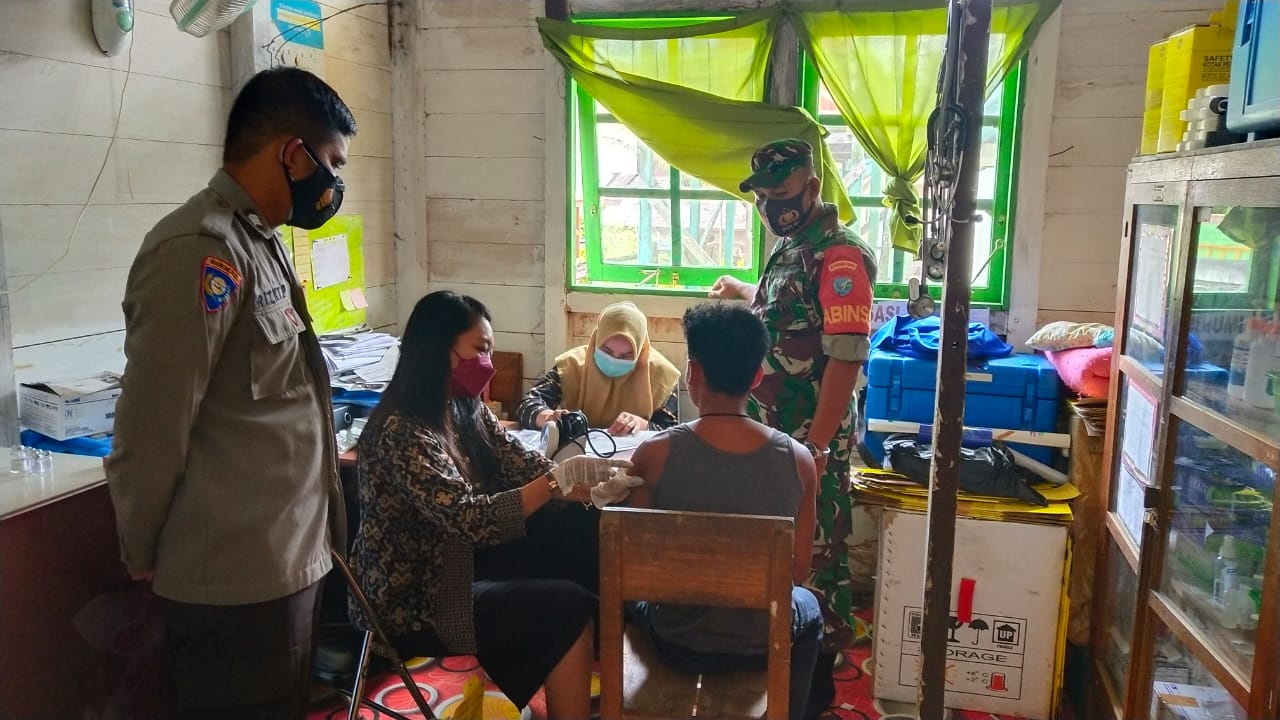 Amankan Vaksinasi Covid-19, Kapolsek Seruyan Hulu dan Anggota Ingatkan Agar Tetap Patuhi Prokes