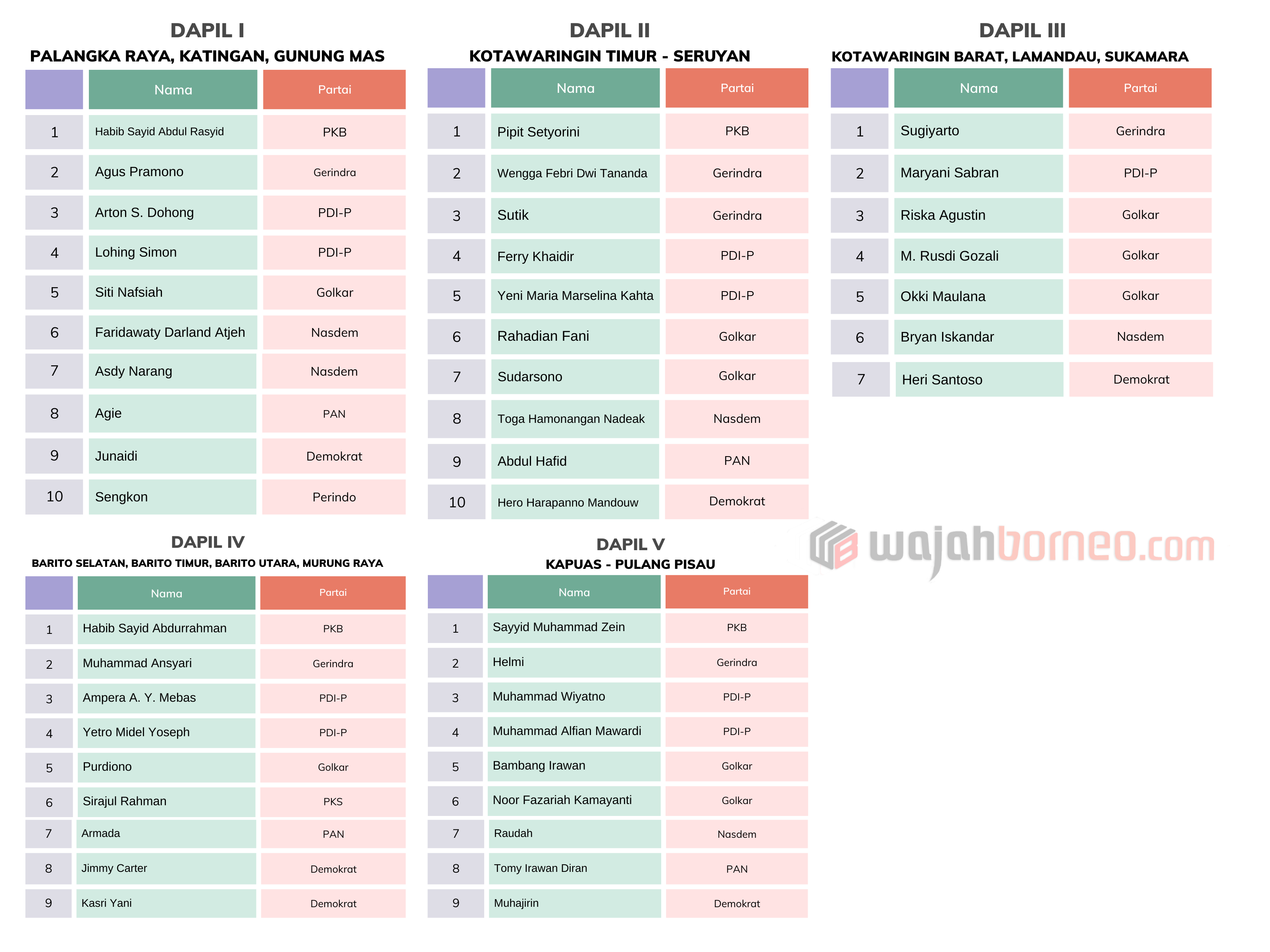Berikut adalah daftar Anggota DPRD Kalteng yang dilantik berdasarkan daerah pemilihan (Dapil):