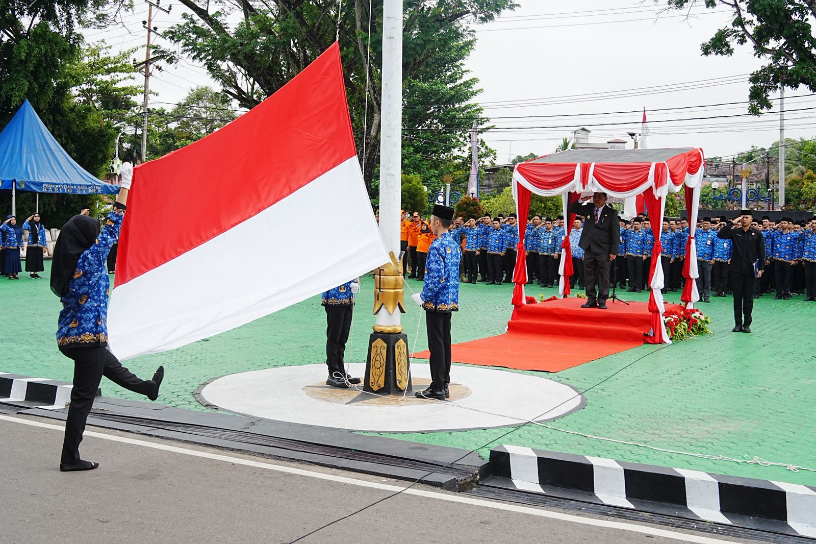 wajahb👁️rneo.com, Muara Teweh — Bupati Barito Utara Shalahuddin memimpin Apel Peringatan Hari Pahlawan yang digelar di halaman Kantor Bupati Barito Utara, Senin pagi, 10 November 2025.