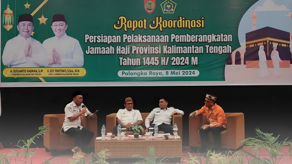 wajahborneo.com, Seruyan – Penjabat (Pj) Bupati Seruyan, Djainuddin Noor yang diwakili oleh Asisten Pemerintahan dan Kesejahteraan Rakyat Sekretariat Daerah (Setda) Agus Suharoto menghadiri rapat koordinasi persiapan pelaksanaan pemberangkatan jemaah haji provinsi Kalimantan tengah tahun 1445 H/2024 M.