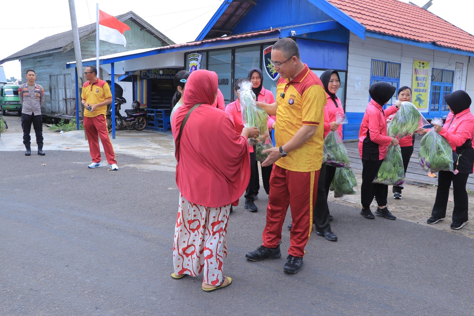 Kapolres Seruyan AKBP Beddy Suwendi didampingi Ny. Putri Beddy Suwendi beserta Wakapolres Seruyan Kompol Hendry, Pejabat Utama (PJU) Polres Seruyan, turun langsung membagikan aneka sayuran segar yang baru dipetik, seperti Sawi, Pakcoy, Selada, Bayam, Terong, Cabai, hingga Tomat dan dikemas kedalam setiap kantong kemudian diberikan kepada warga setempat.