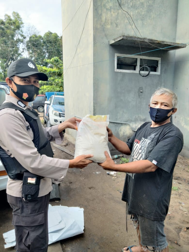 Bripka Kahfi menyiapkan beras yang akan dibagikan kepada warga masyarakat di kabupaten Seruyan yang membutuhkan guna membantu kebutuhan sehari hari. Senin, (10/5/2021).