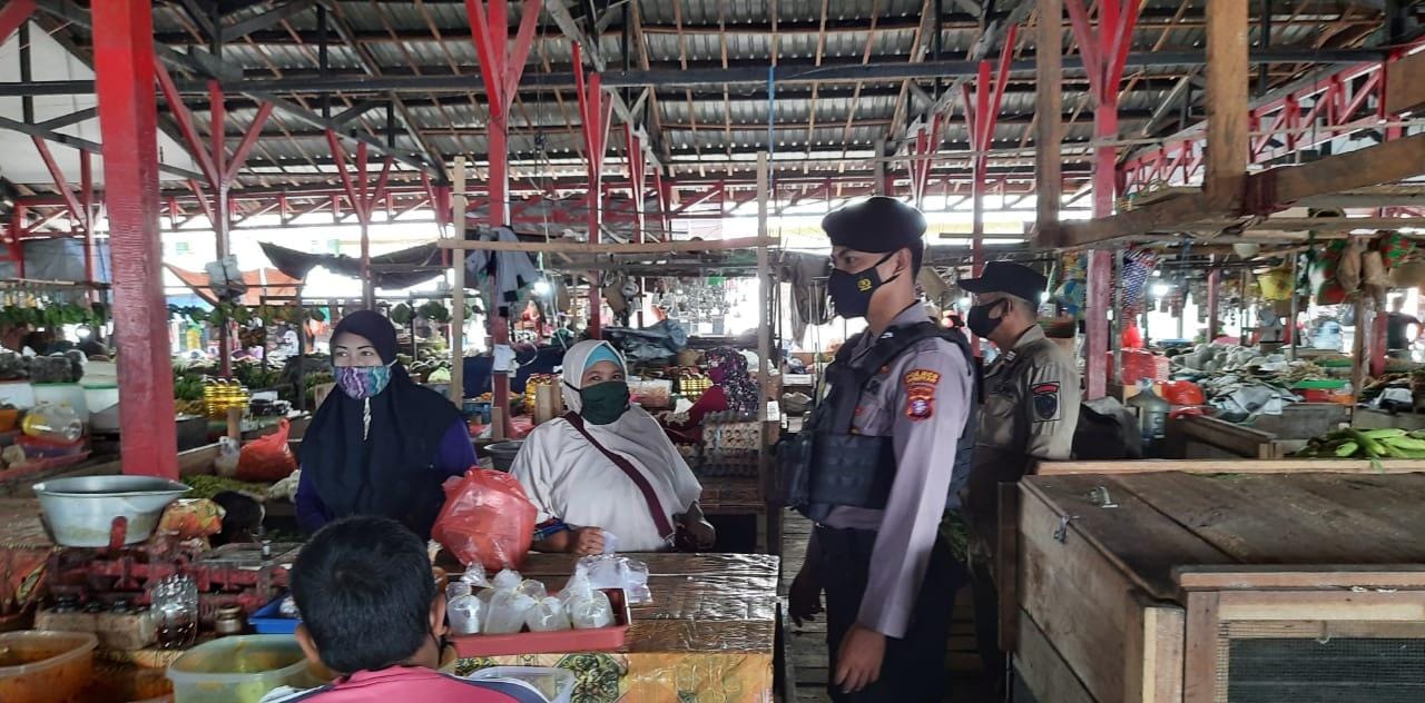 Karena itu petugas Yustisi memberikan teguran Tertulis maupun Teguran lisan dan memberikan imbauan terhadap masyarakat yang beraktivitas di pasar untuk selalu mematuhi Protokol Kesehatan.