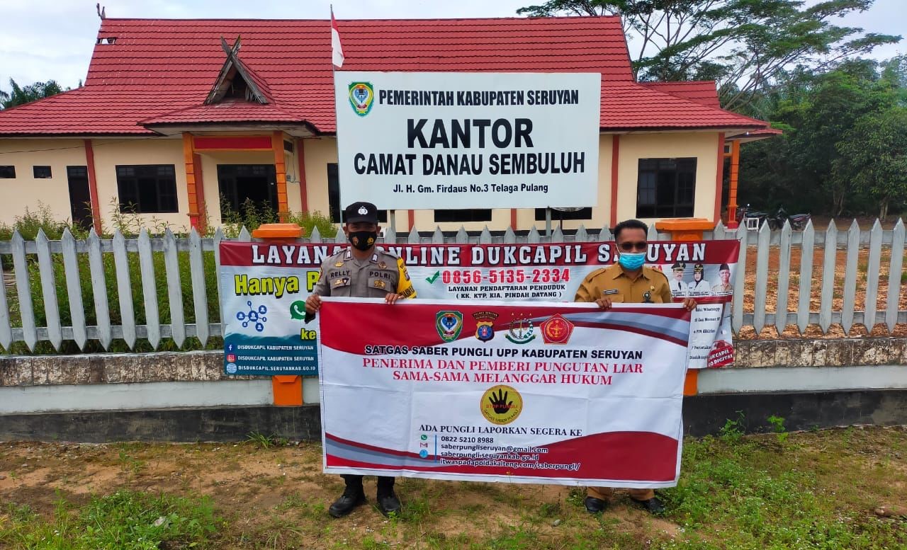 Dalam hal ini Polsek Danau Sembuluh mensosialisasikan saber pungli dengan menggunakan Spanduk Yang Bertuliskan Stop Pungli !!! “Jangan Memberi Jangan Menerima Dan Laporkan“ apabila ada pungli , serta Mensosialisasikan Peraturan Presiden nomor 87 tahun 2016 tentang Satuan tugas sapu bersih pungutan liar.