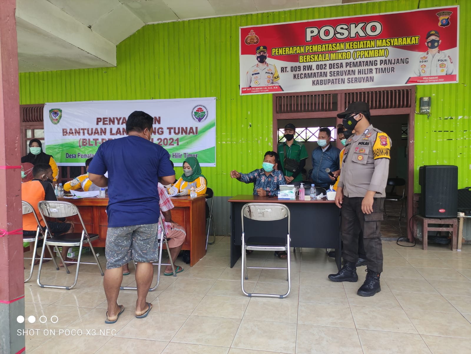 WAJAHBORNEO.com, Seruyan – Polsek Seruyan Hilir Bhabinkamtibmas Desa Pematang Panjang melaksanakan giat monitoring dan pengamanan Pelaksanaan Pembagian / Penyaluran BLT (bantuan langsung tunai) yang bersumber dari DD (Dana Desa) di Balai Desa Pematang Panjang. Kamis (15/07/2021)
