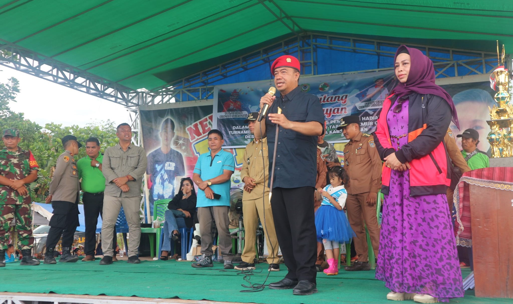 WAJAHBORNEO.com, Seruyan – Bupati Seruyan Yulhaidir melakukan kunjungan sekaligus menghadiri dan membagikan secara simbolis hadiah turnamen sepakbola Desa Tebiku. di Lapangan Sepakbola Desa Tebiku Kecamatan Seruyan Raya, Selasa, 8 November 2022.