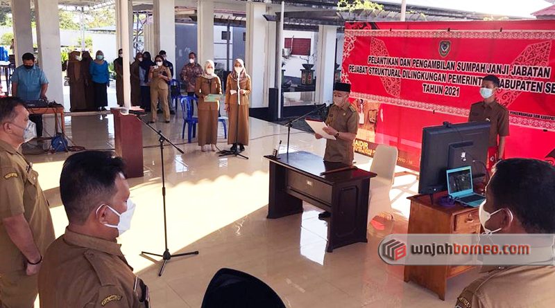 WAJAHBORNEO.com, Seruyan – Selasa, 8 Juni 2021 pagi, Bupati Seruyan Kalimantan Tengah, Yulhaidir melantik dan mengambil sumpah janji 20 pejabat struktural di lingkungan Pemerintah Kabupaten (Pemkab) Seruyan di Pendopo Rujab Bupati Seruyan, Selasa, 8 Juni 2021.