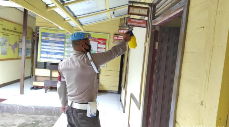 “Melakukan penyemprotan disinfektan untuk mencegah penyebaran virus covid 19 sehingga sterilisasi ruang publik maupun ruangan lainnya di mako polsek tetap terjaga,” tegas Kapolsek.