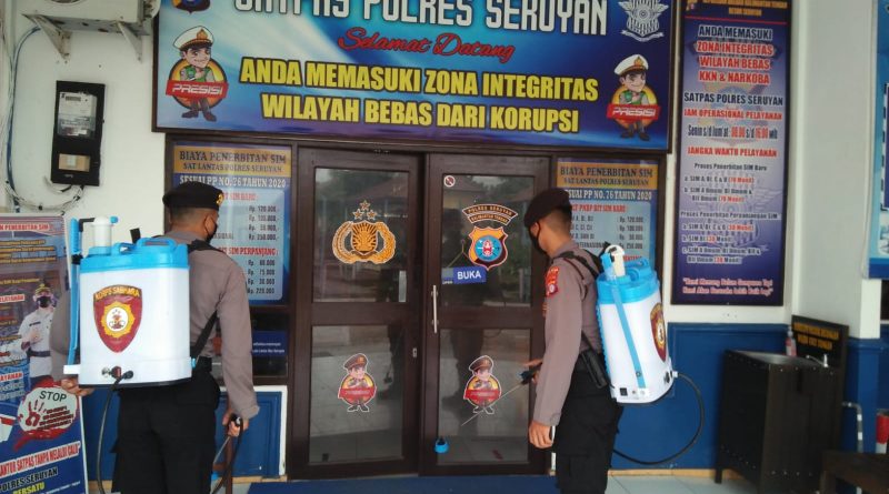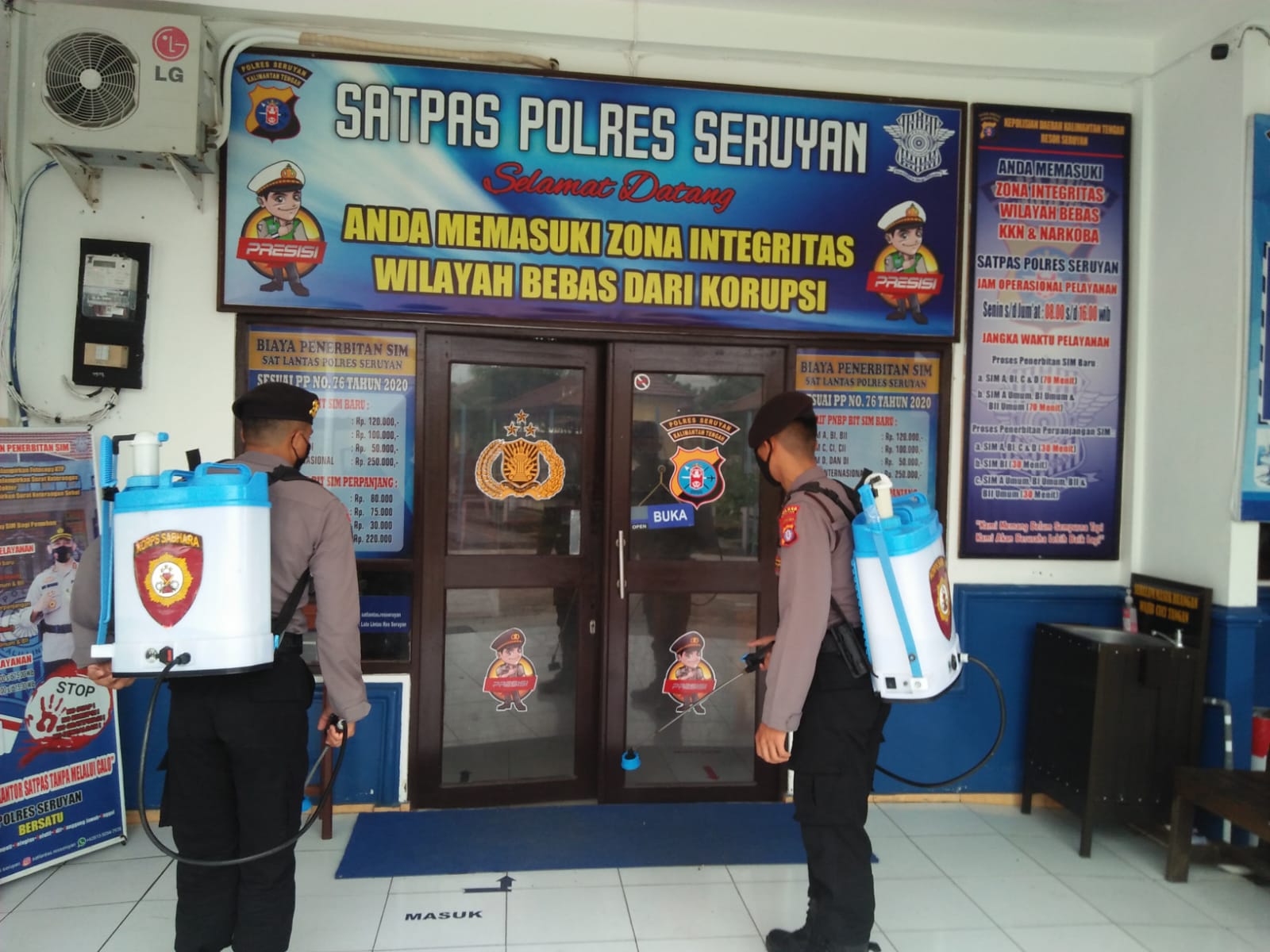 Kapolres Seruyan AKBP Bayu Wicaksono, S.H., S.I.K., M.Si melalui Kasat Samapta AKP Harjanto mengatakan agar Personil Samapta melaksanakan penyemprotan disenfektan disekitaran res seruyan. Personil Dalmas Samapta, Polres Seruyan dipimpin Bripka Mardiansyah melakukan penyemprotan disinfektan di Mapolres Seruyan.