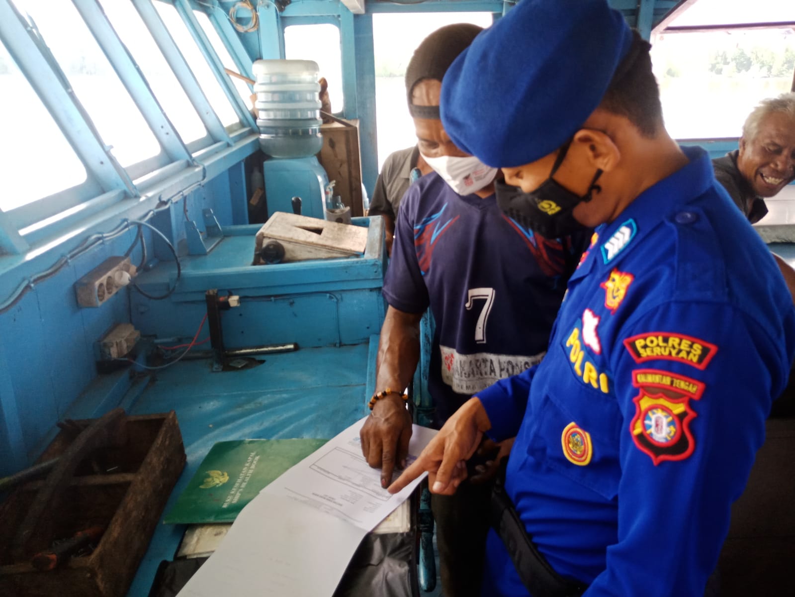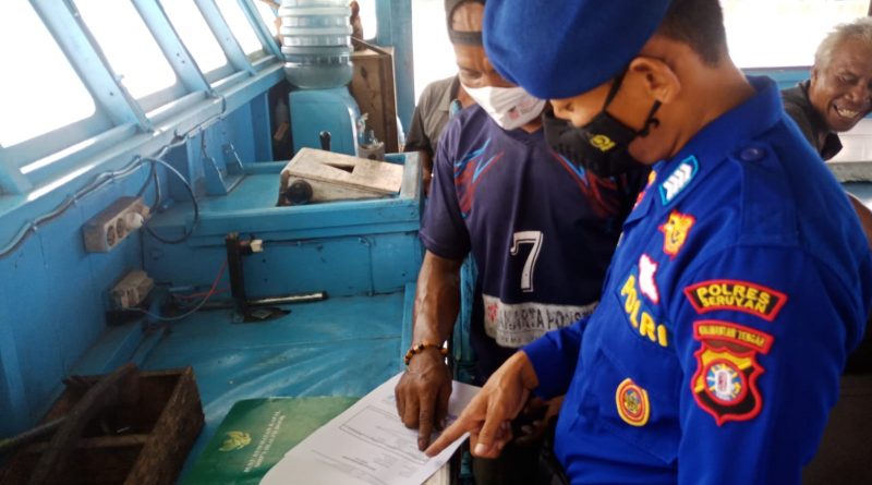 WAJAHBORNEO.com, Seruyan – Satpolairud Polres Seruyan kunjungi kapal yang berlabuh di pelabuhan KP3 Kuala Pembuang, Minggu (17/4/2022)