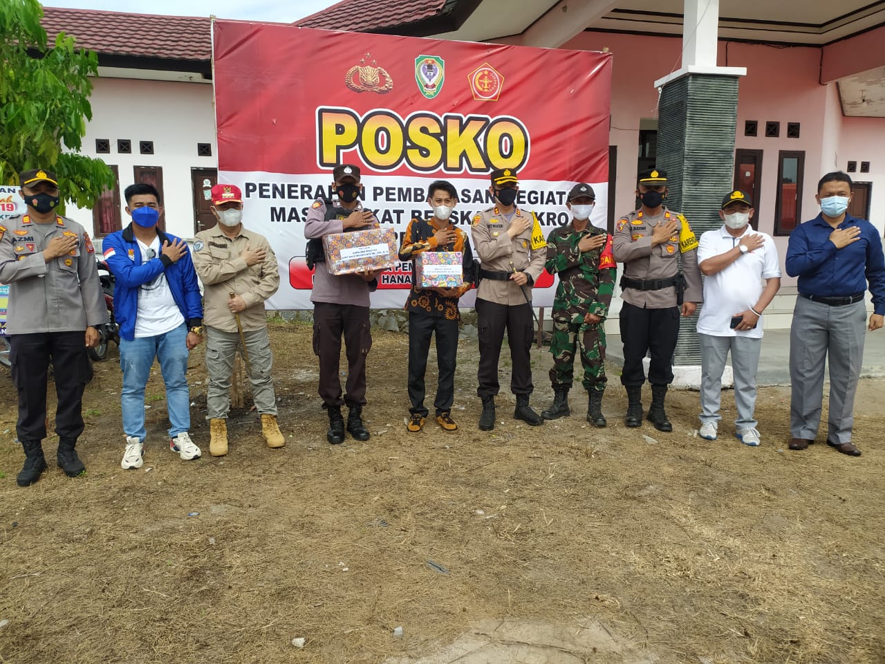 Kegiatan diakhiri dengan penyerahan bingkisan kepada perwakilan Petugas Posko PPKM oleh Kapolres Seruyan dan Bupati Seruyan untuk menunjang tugas di lapangan.
