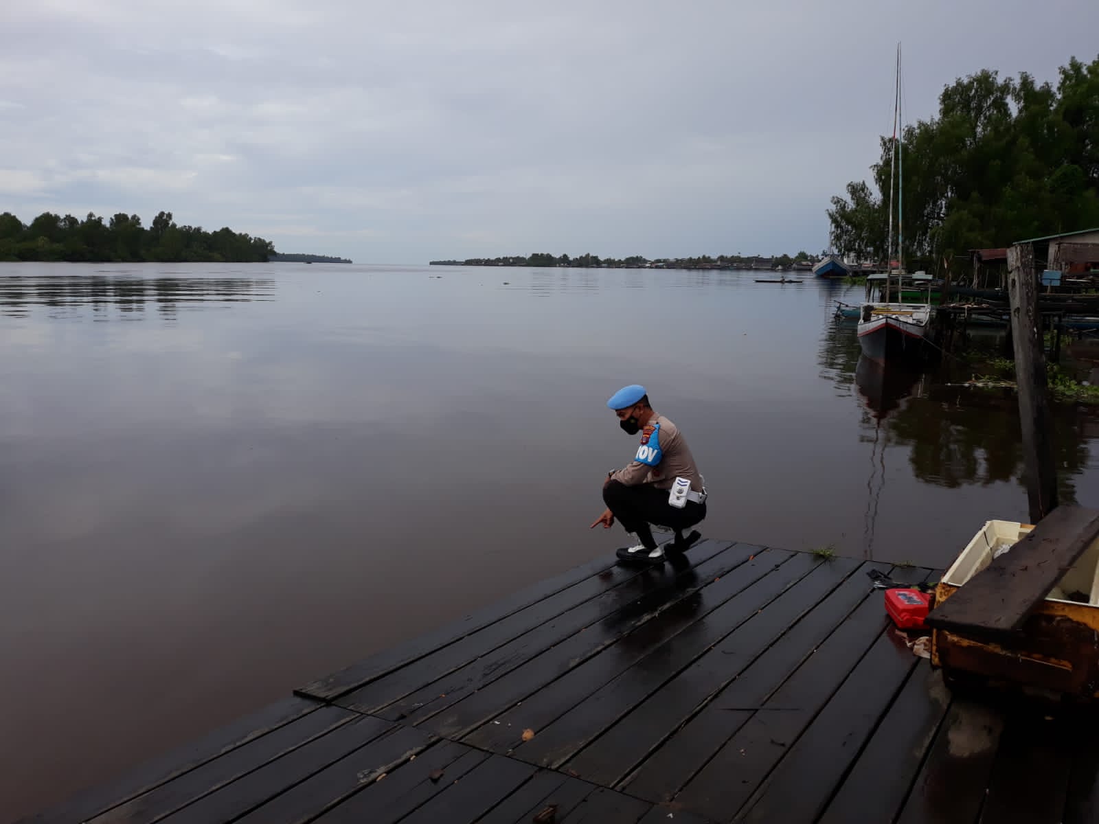 Anggota Polsek Seruyan Hilir melakukan Patroli antisipasi banjir dan cek debit air di sungai Seruyan.