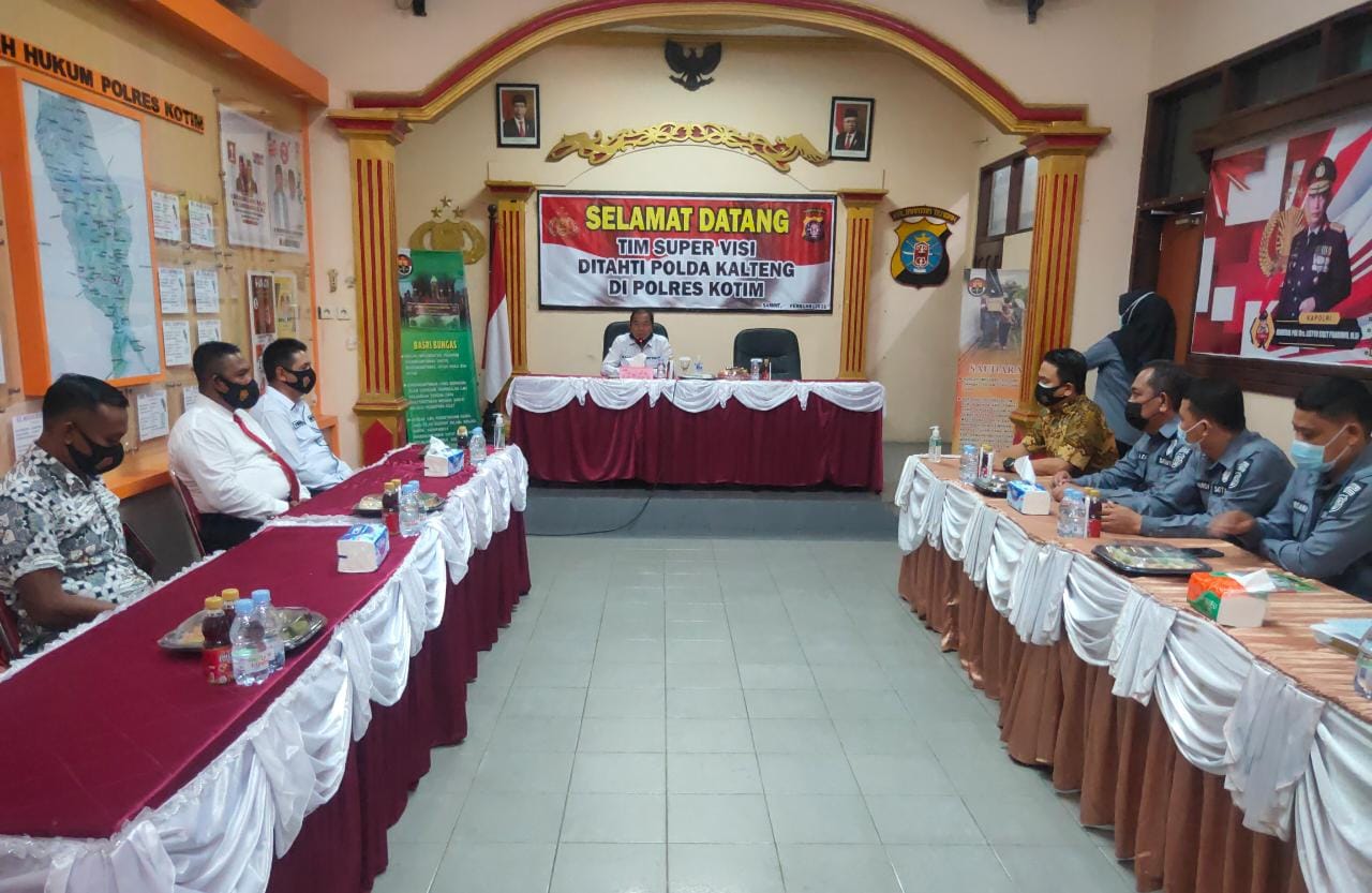 WAJAHBORNEO.com, Seruyan – Kunjungan suvervisi Ditahti Polda Kalimantan Tengah bersama anggota Tim terkait dengan menegemen dan operasional tahanan dan barang bukti Polres Kotim, Polres Seruyan dan Ditpolair di Mapolres Kotim, Sampit Kabupaten Kotawaringin Tumur, Jum’at 19 Februari 2021 pagi.