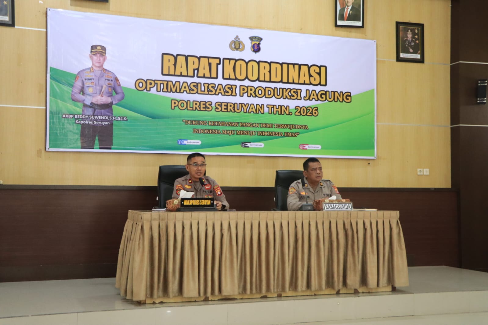 wajahb👁️rneo.com, Seruyan — Mendukung program ketahanan pangan nasional, Polres Seruyan menggelar rapat koordinasi (Rakor) optimalisasi produksi jagung tahun 2026 di Aula Patriatama 95 Polres Seruyan, Jumat, 6 Maret 2026.