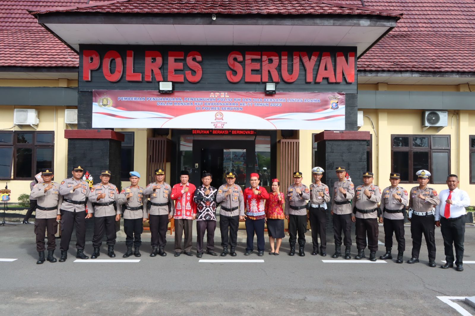 WAJAHBORNEO.com, Seruyan – Secara bersamaan Polres Seruyan menggelar 3 kegiatan mulai dari Pemberian Rewards, Pengukuhan Polisi RW & Doa Bersama Lintas Agama, Polres Seruyan jajaran Polda Kalteng meriahkan acara dalam rangka menuju “Hari Bhayangkara Ke-77, Sabtu (17/06/2023).