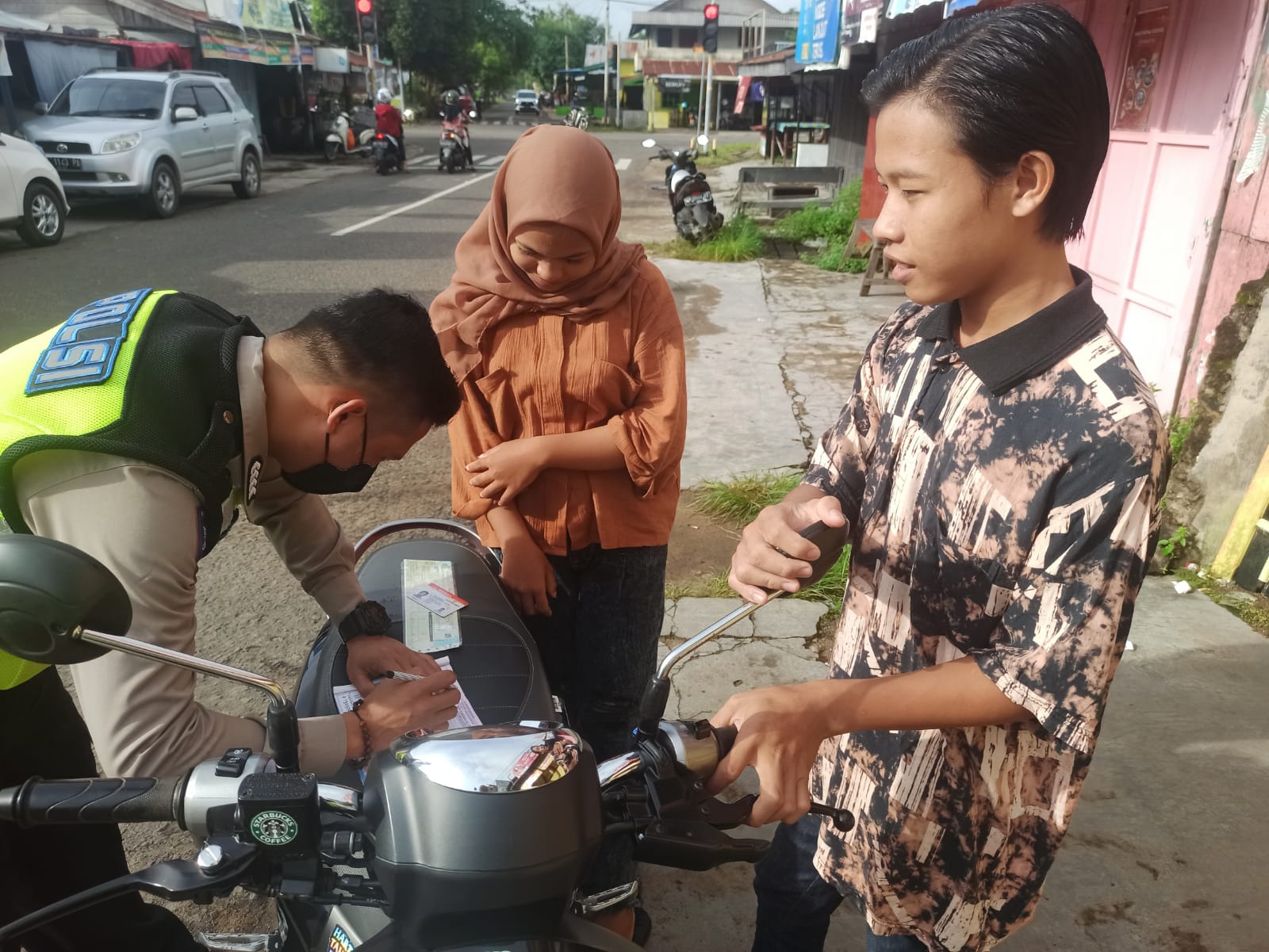 Selain itu Kasat Lantas juga menambahkan “Untuk hari ini, pengendara ditindak dengan teguran tertulis,”