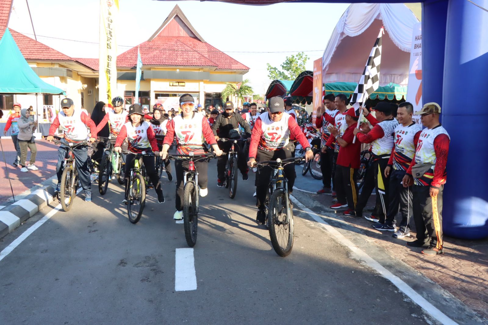Kapolres Seruyan AKBP Ampi Mesias Von Bulow, S.I.K., M.H. Menyampaikan Kegiatan Sepeda Santai dan Jalan Santai ini merupakan Rangkaian Kegiatan dalam rangka memperingati Hari Bhayangkara Ke-77 Tahun 2023 di Polres Seruyan.