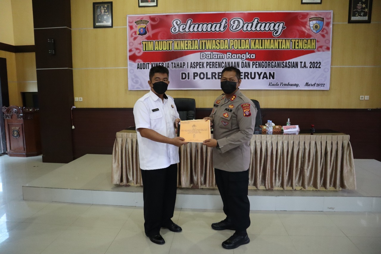 WAJAHBORNEO.com, Seruyan – Pelaksanaan Audit Kinerja Itwasda Polda Kalteng Tahap-I aspek perencanaan dan pengorganisasian pada satker Polres Seruyan Tahun Anggaran 2022, yang dilaksanakan sejak 05 Maret 2022 telah berakhir, Minggu (06/03/2022).