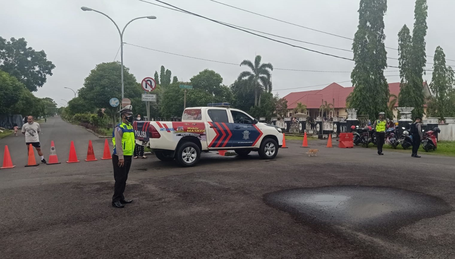 Selain mengatur arus lalu lintas, petugas juga mengingatkan para pengendara agar senantiasa mematuhi seluruh peraturan berlalu lintas dan protokol kesehatan yang berlaku di tengah wabah Covid-19 yang melanda saat ini.