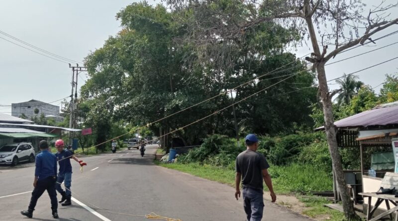 wajahborneo.com, Seruyan – Upaya menjaga keselamatan masyarakat yang melintas di Jalan Ahmad Yani kawasan Bundaran 1 Kuala Pembuang. Dinas Pemadam Kebakaran dan Penyelamatan (DPKP) Kabupaten Seruyan kembali menebang pohon yang menjuntai hingga ke Jalan Raya, Sabtu, 25 April 2026.