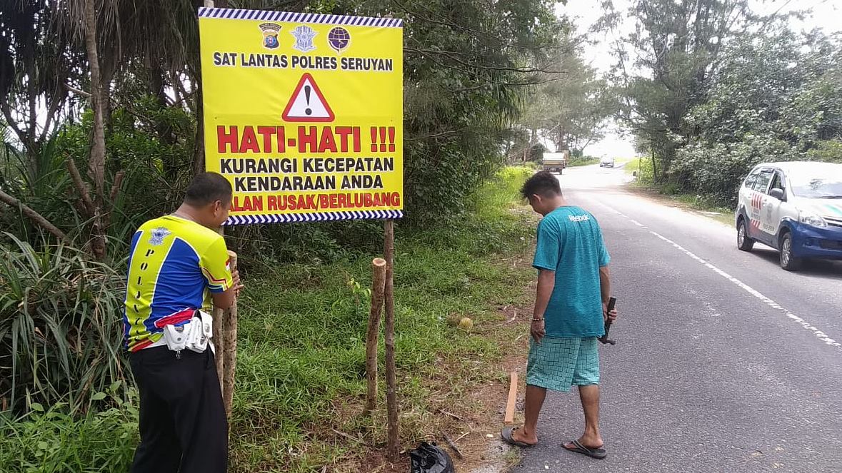 Kapolres Seruyan AKBP Bayu Wicaksono melalui Kasat Lantas Iptu Moch Romadhon mengatakan pemasangan spanduk imbauan sebagai wujud penanganan preemtif dari kepolisian untuk memberitahukan kepada masyarakat bahwa jalan dalam keadaan rusak sehingga para pengendara dapat berhati-hati untuk keselamatan dirinya dan orang lain saat berkendara.