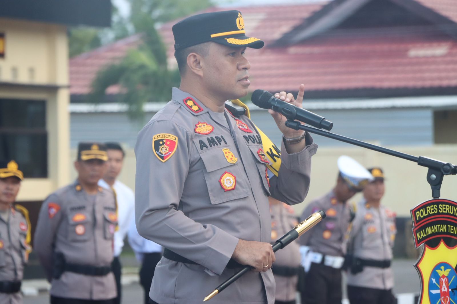 “Sebelum saya memulai arahan seperti biasa Saya persilahkan untuk mendengar baik keluhan ataupun saran saya berikan 5 menit.” Ujar Kapolres