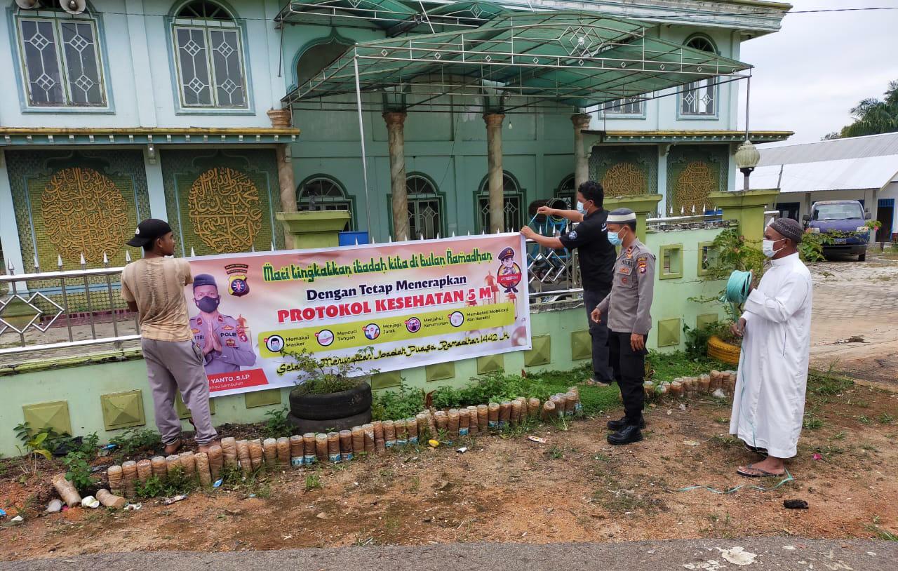 “Pemasangan spanduk yang kami lakukan guna memaksimalkan upaya pencegahan penyebaran pandemi Covid-19 terutama di tempat ibadah menjelang bulan suci Ramadhan,” kata Kapolsek Danau Sembuluh mewakili Kapolres Seruyan AKBP Bayu Wicaksono, S.H., S.I.K., M.Si.