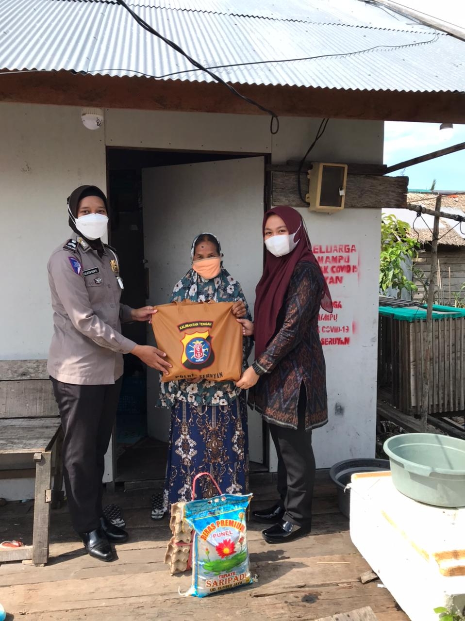 WAJAHBORNEO.com, Seruyan – Jum’at Siang Kapolres Seruyan AKBP Bayu Wicaksono, S.H., S.I.K., M.Si., Melalui Kabag Sumda AKP Junaldi Menjelaskan Personil Sat Binmas dampingi Polwan Polres Seruyan jajaran Polda Kalteng menyambangi warga kurang mampu di Desa Sungai Undang Jl.Ais Nasution Kec.Seruyan Hilir Kab.Seruyan (21/5/21)