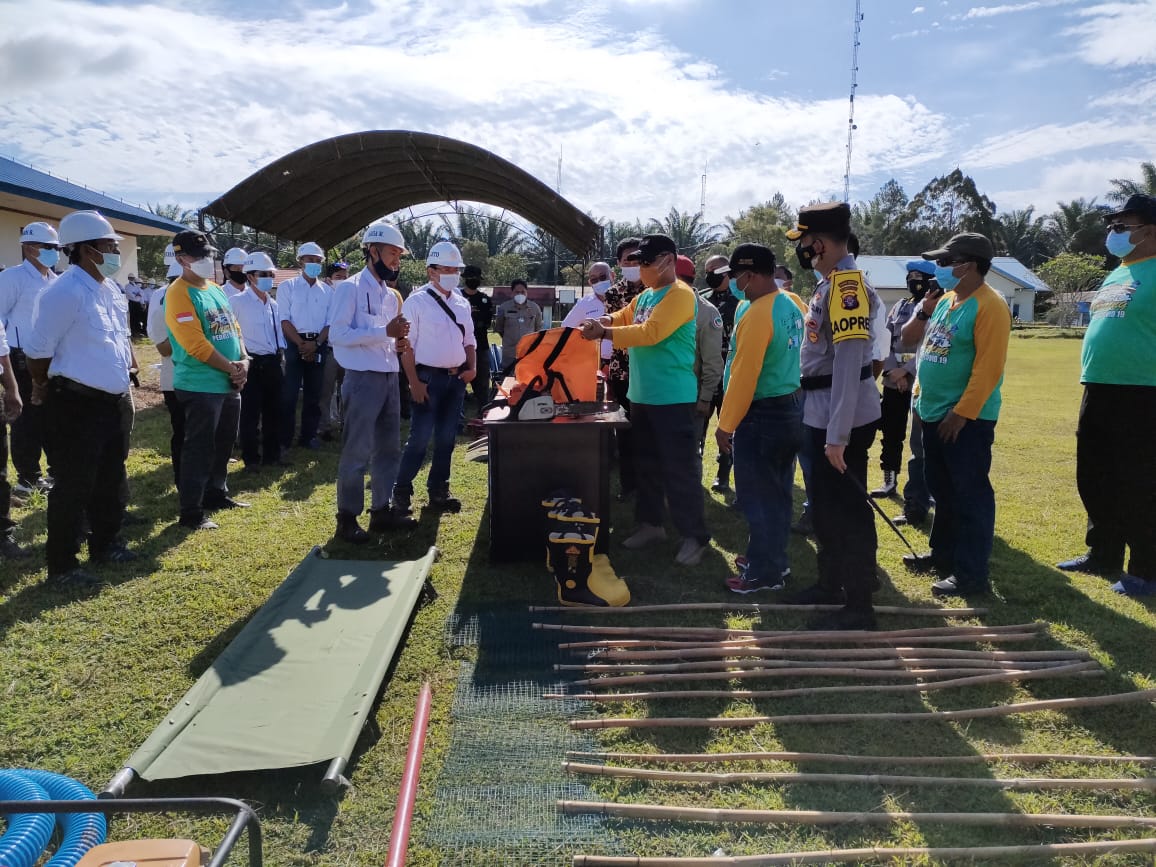 Dalam kesempatan ini pula, dilaksanakan simulasi penanganan karhutla oleh tim yang dimiliki PT SLM.