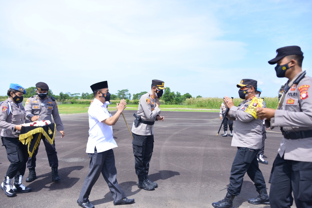 Kapolres Seruyan AKBP Bayu Wicaksono bersama unsur Forkopimda Kabupaten Seruyan serta pejabat utama Polres Seruyan menyambut kedatangan Kapolda Kalteng di Pintu Gerbang Mako Polres Seruyan,