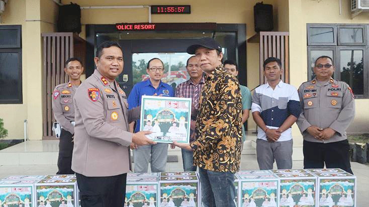 Kapolres Seruyan AKBP Priyo Purwanto secara simbolis menyerahkan bingkisan lebaran kepada Ketua PWI Seruyan Bambang Hermanto di Mapolres Seruyan, Kamis, 4 April 2024