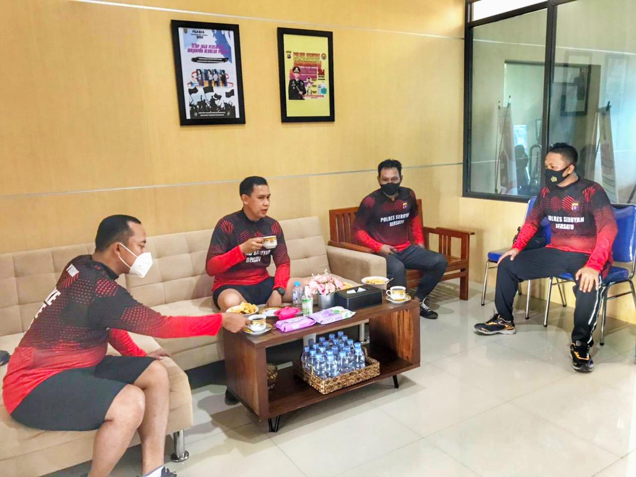 WAJAHBORNEO.com, Seruyan–Jum’at Pagi Seperti biasa Kapolres Seruyan AKBP Bayu Wicaksono, S.H., S.I.K., M.Si.,Setelah melaksanakan SerMa Tepe, beserta Wakapolres dan PJU melaksanakan Coffe Morning di Seruyan Kopi Selasar Tengah (SerKo SerTeng) di Mako Polres Seruyan Jl.Ayani Kec.Seruyan Hilir Kab.Seruyan. (21/5/21).