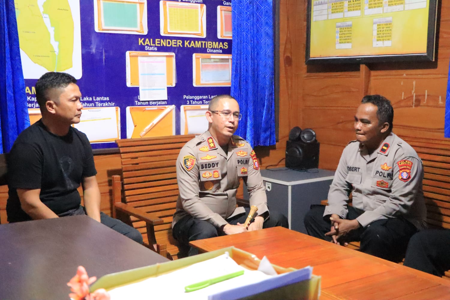 Kapolres Seruyan AKBP Beddy Suwendi saat berdiskusi bersama Kapolsek Seruyan Hulu, di Ruang Kerja Mapolsek Seruyan Hulu, Selasa, 24 Februari 2026. Foto/Ist/