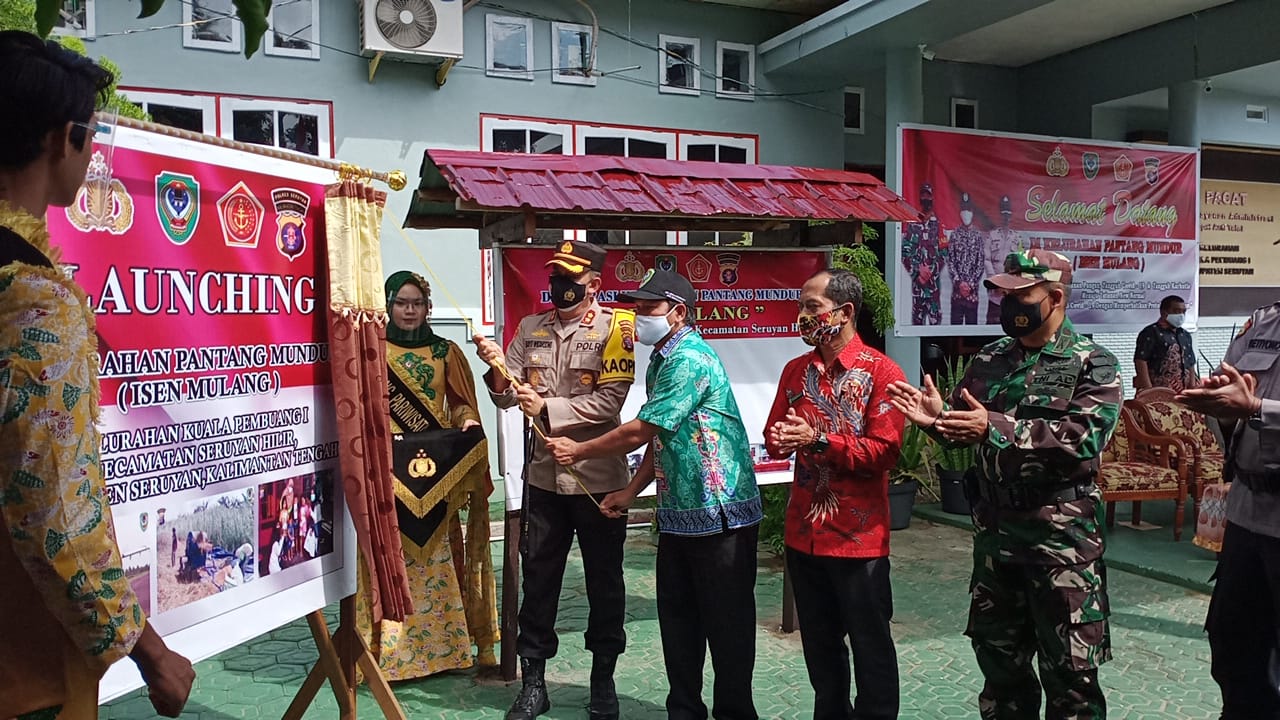 WAJAHBORNEO.com, Seruyan – Sebagai langkah upaya pencegahan Covid-19 dalam, membangun dan menggalakkan Program “Lewu Isen Mulang” di Kecamatan Seruyan Hilir, Kabupaten Seruyan, Provinsi Kalteng, Kapolres Seruyan AKBP Bayu Wicaksono melounching Kelurahan Kuala Pembuang I sebagai Kelurahan Pantang Mundur (Isen Mulang), Kamis, 18 Februari 2021.