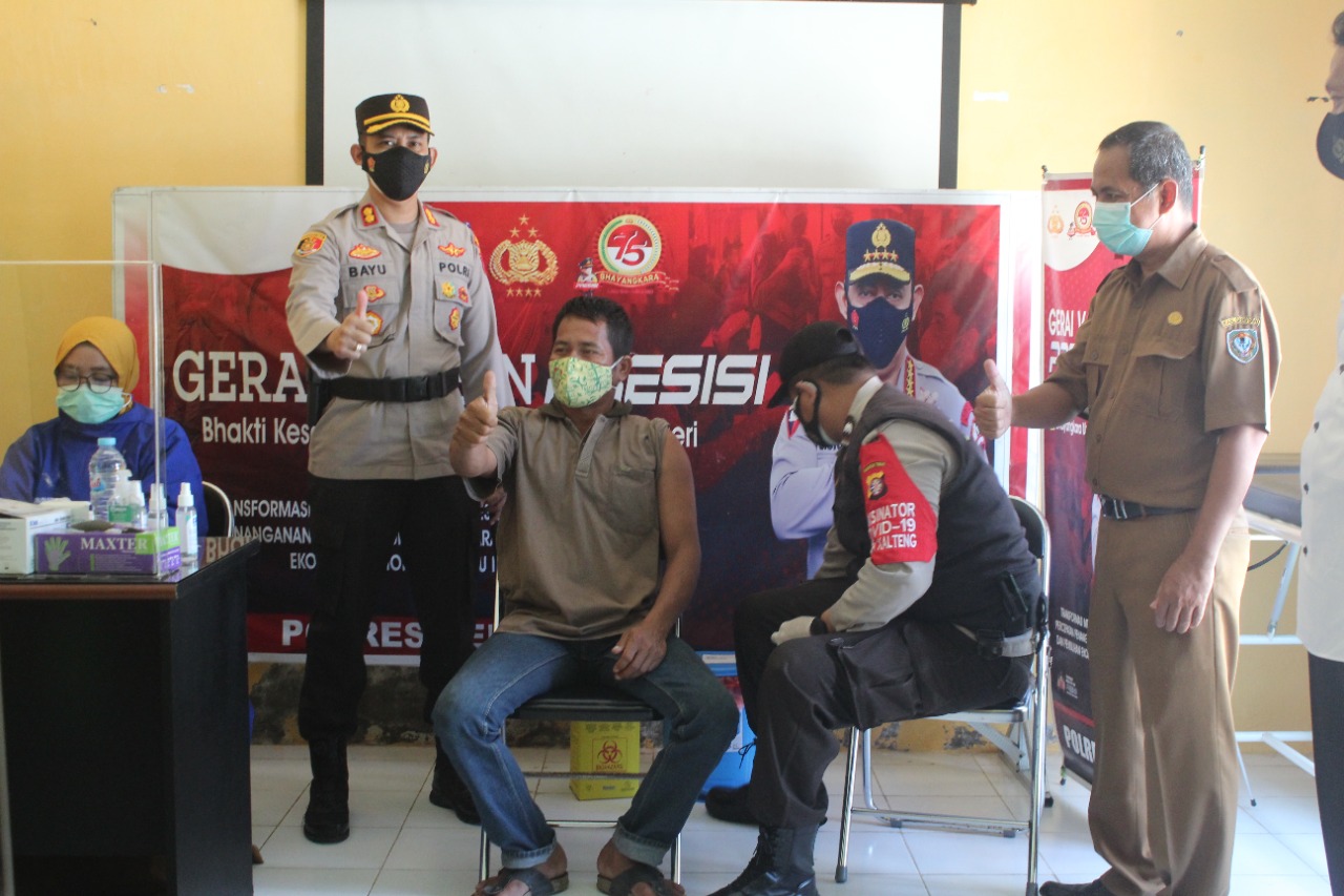 Kapolres Seruyan AKBP Bayu Wicaksono, S. H., S.I.K., Msi. mengucapkan “terimakasih kepada Pemkab Seruyan khususnya UPTD Puskesmas Kuala Pembuang Satu yang telah memfasilitasi kegiatan vaksinasi hari ini. Dan saya ucapkan Terima kasih juga kepada seluruh warga masyarakat karena kesadaran dan keinginan masyarakat saat ini sangat tinggi untuk mengikuti vaksinasi. Oleh karenanya kita sebagai Satgas Covid 19 Kabupaten Seruyan harus memberikan pelayanan yang terbaik.
