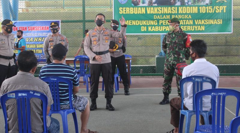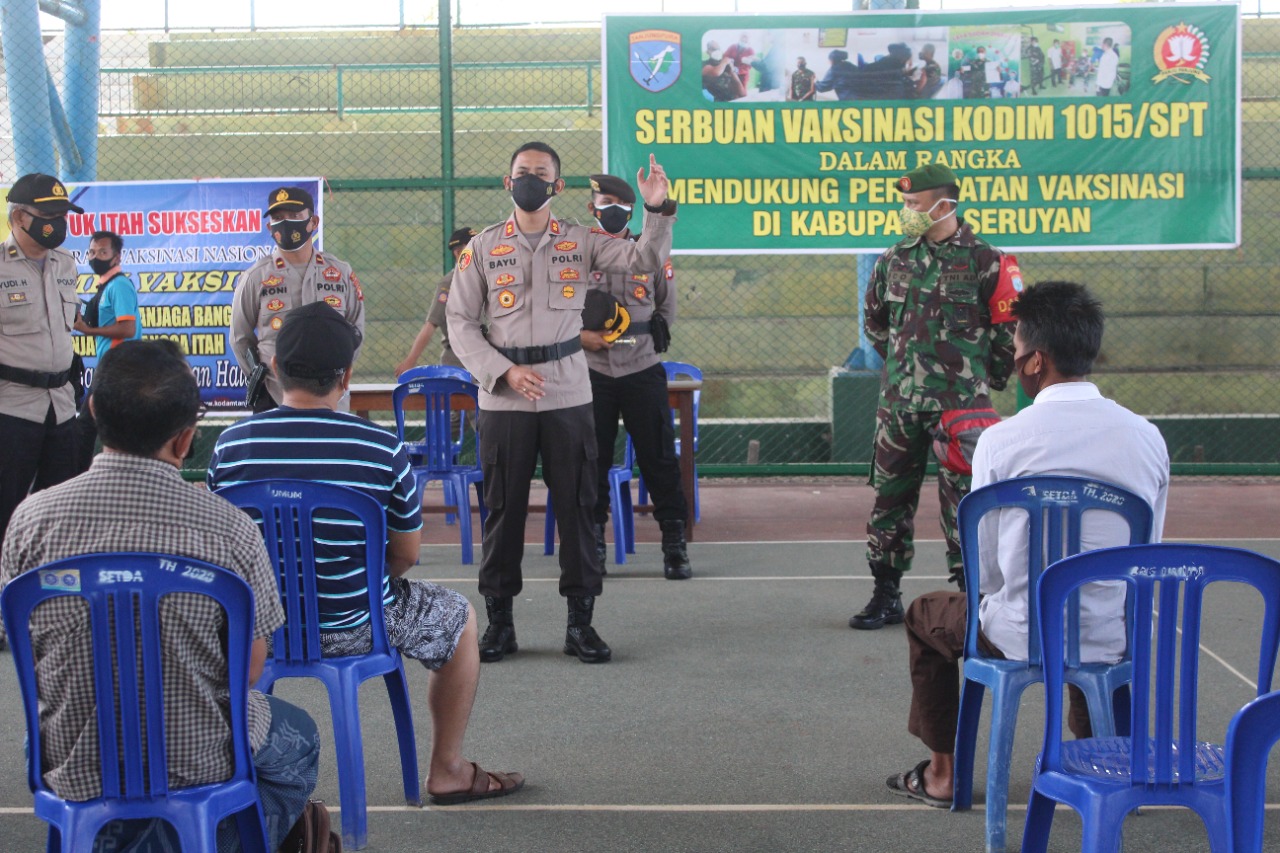 Kapolres Seruyan AKBP Bayu Wicaksono, S. H., S.I.K., Msi. mengucapkan “terimakasih kepada Pemkab Seruyan, Dinas Kesehatan, dan RSUD Kuala Pembuang dan khusus nya UPTD Puskesmas Kuala Pembuang Satu yang telah memfasilitasi kegiatan vaksinasi ini. Dan di harapkan dalam pelaksanaan vaksinasi tetap menerapkan protokol kesehatan. Dengan vaksinasi kita berikhtiar meningkatkan imunitas tubuh dan mengurangi resiko gejala berat yang dialami jika terkena Covid19.”