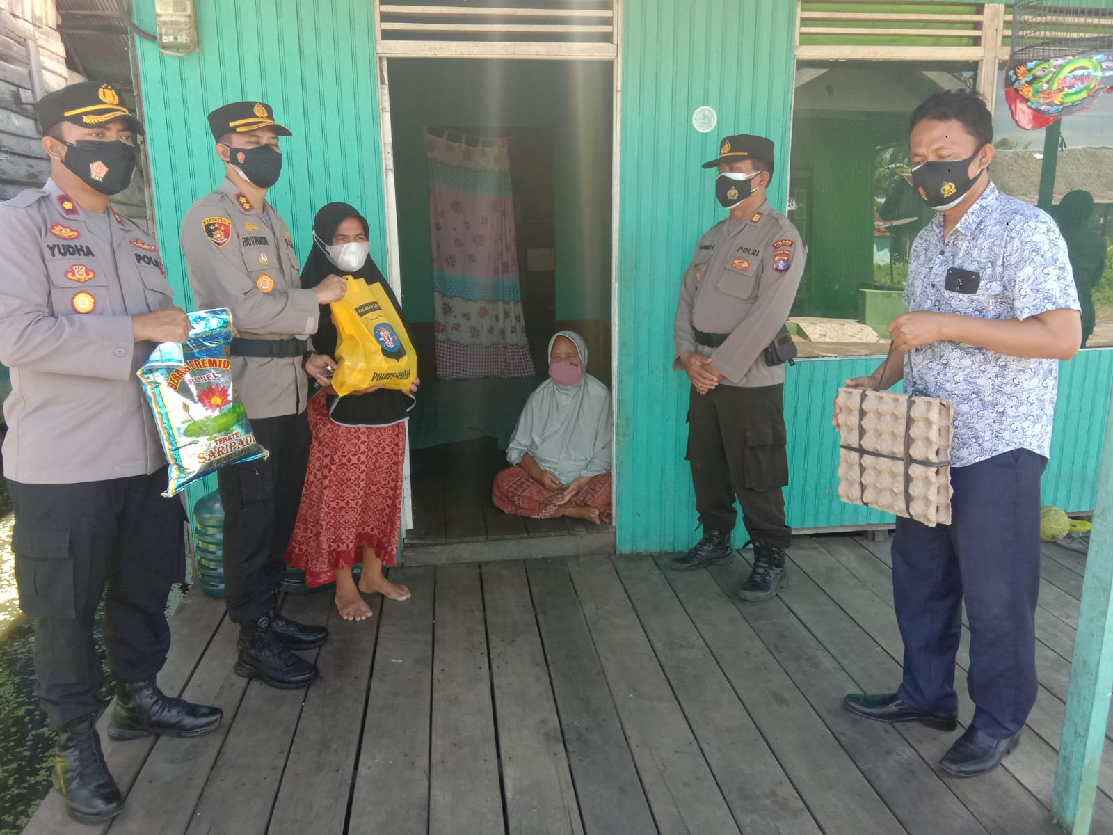 Kapolres Seruyan AKBP Bayu Wicaksono, S.H., S.I.K., M.Si. Di Dampingi Kasat Binmas Akp Wawan Aryana Beserta PJU Polres Seruyan dan Personil Polres Seruyan langsung terjun ke rumah-rumah warga yang kurang mampu dengan membagikan Paket Sembako.