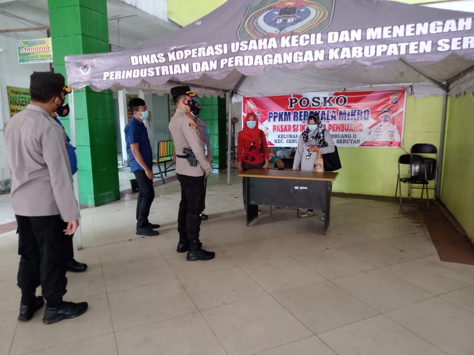 Kapolres Seruyan AKBP Bayu Wicaksono S.H., S.I.K., M.Si melaksanakan monitoring Posko PPKM di pasar SAIK Kuala Pembuang sekaligus melakukan sosialisasi dengan memberi himbauan kepada masyarakat Kuala Pembuang untuk terapkan Protokol Kesehatan dengan menggunakan Masker, Mencuci Tangan dan Menjaga Jarak.