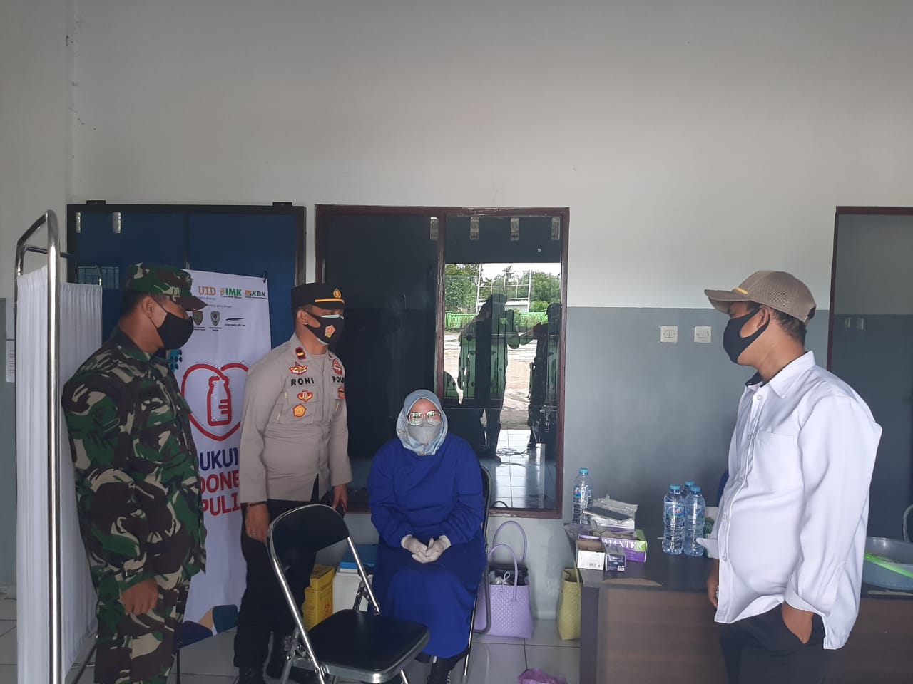 Seperti biasa sebelum dilakukan vaksinasi, para peserta menjalani screening kesehatan yang meliputi cek suhu badan, cek tekanan darah dan wawancara riwayat kesehatan.