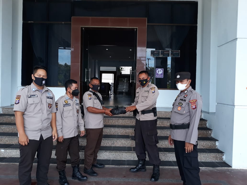 “Personel Sat Binmas dalam Kesempatan Yang sama Memberikan Sembako kepada satuan pengamanan di DPRD Kabupaten Seruyan. Kasat Binmas berharap semoga sembako yang diterima bisa bermanfaat dan bisa untuk memnuhi kebutuhan pada saat jaga.