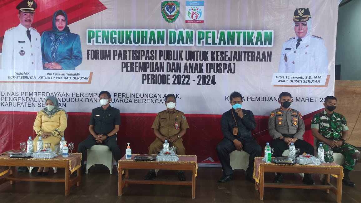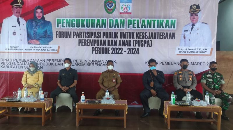 WAJAHBORNEO.com, Seruyan – Polda Kalimantan Tengah, bertempat di Pendopo Rumah Jabatan Bupati Seruyan Jalan Pemuda II Kuala Pembuang Kecamatan Seruyan Hilir, Kabupaten Seruyan telah dilaksanakan Pengukuhan dan Pelantikan Forum Partisipasi untuk Kesejahteraan Perempuan dan Anak (Puspa) Periode 2022 – 2024, Selasa (22/03/2022).