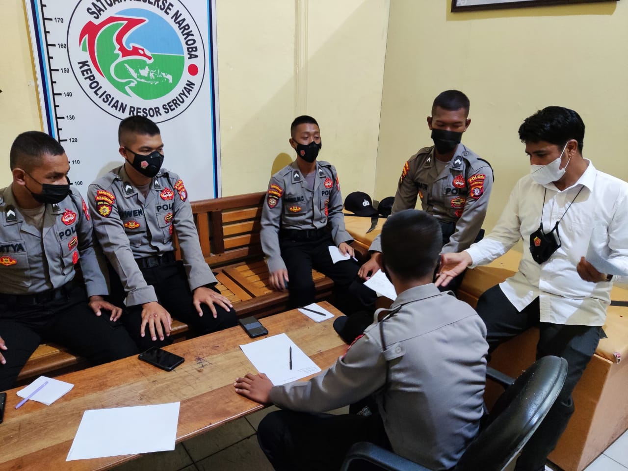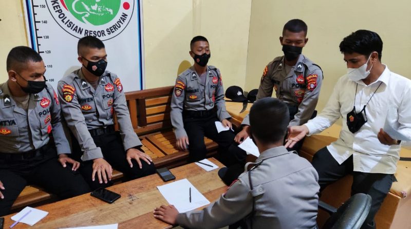 WAJAHBORNEO.com, Seruyan – Pada hari senin tanggal 27 Desember 2021 bertempat di ruangan Satresnarkoba Polres Seruyan Ipda Andri Wicaksono melalui Kaurbinops Satresnarkoba Polres Seruyan Memberikan Pembekalan Terhadap 9 Personil Bintara Baru Polres Seruyan Dengan Memberikan Materi Pengenalan Terhadap Tindak Pidana Narkoba.