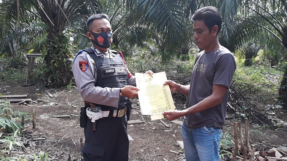 WAJAHBORNEO.com, Seruyan – Anggota Polsek Seruyan Tengah Polres Seruyan Polda Kalteng terus melaksanakan penyebaran Maklumat Kapolda Kalteng tentang larangan membakar hutan dan lahan. Kegiatan tersebut dilakukan Bripka Candro DPD di Kecamatan Seruyan Tengah, Kabupaten Seruyan, Kamis, 28 Januari 2021 pagi.
