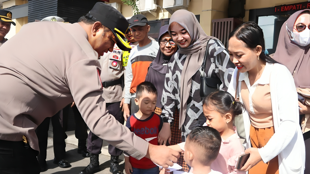 KAPOLRES SERUYAN AKBP Priyo Purwanto menyapa pemudik di sela-sela melepas keberangkatan menuju pelabuhan Sampit, Kotim di halaman Mapolres Seruyan, Jumat, 5 April 2024.