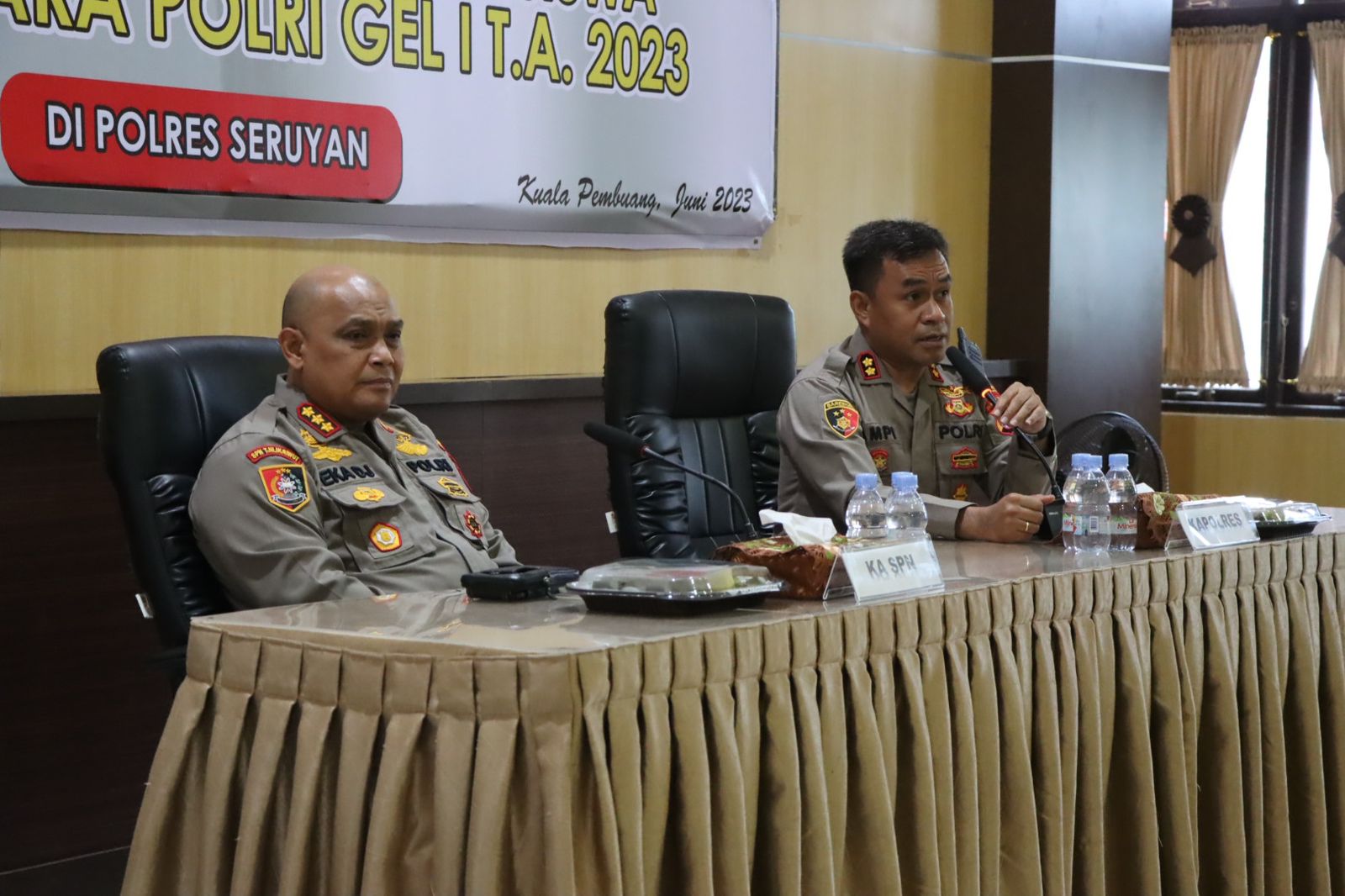 WAJAHBORNEO.com, Seruyan – Pada hari Jumat tanggal 16 Juni 2023 pukul 09.00 WIB, Kepala Sekolah Polisi Negara (Ka SPN) Polda Kalteng melakukan kunjungan ke Polres Seruyan dalam rangka pemantauan siswa Latihan Dasar (Latja) SPN Polda Kalteng. Acara ini berlangsung di Aula Patriatama 95 Polres Seruyan.
