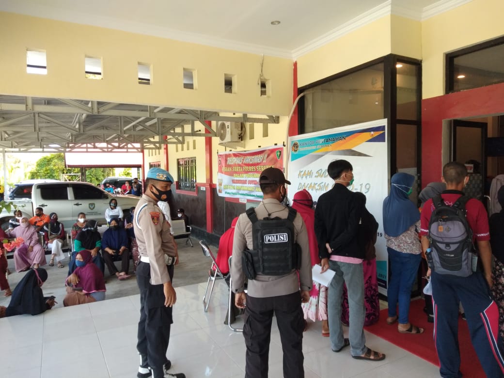 WAJAHBORNEO.com, Seruyan – Polsek Seruyan Hilir Seruyan Hilir laksanakan Pengamanan dan monitoring kegiatan vaksinasi Covid-19 kepada para pedagang dan masyarakat di kantor BPN Kuala Pembuang, Jumat (18/6/2021).