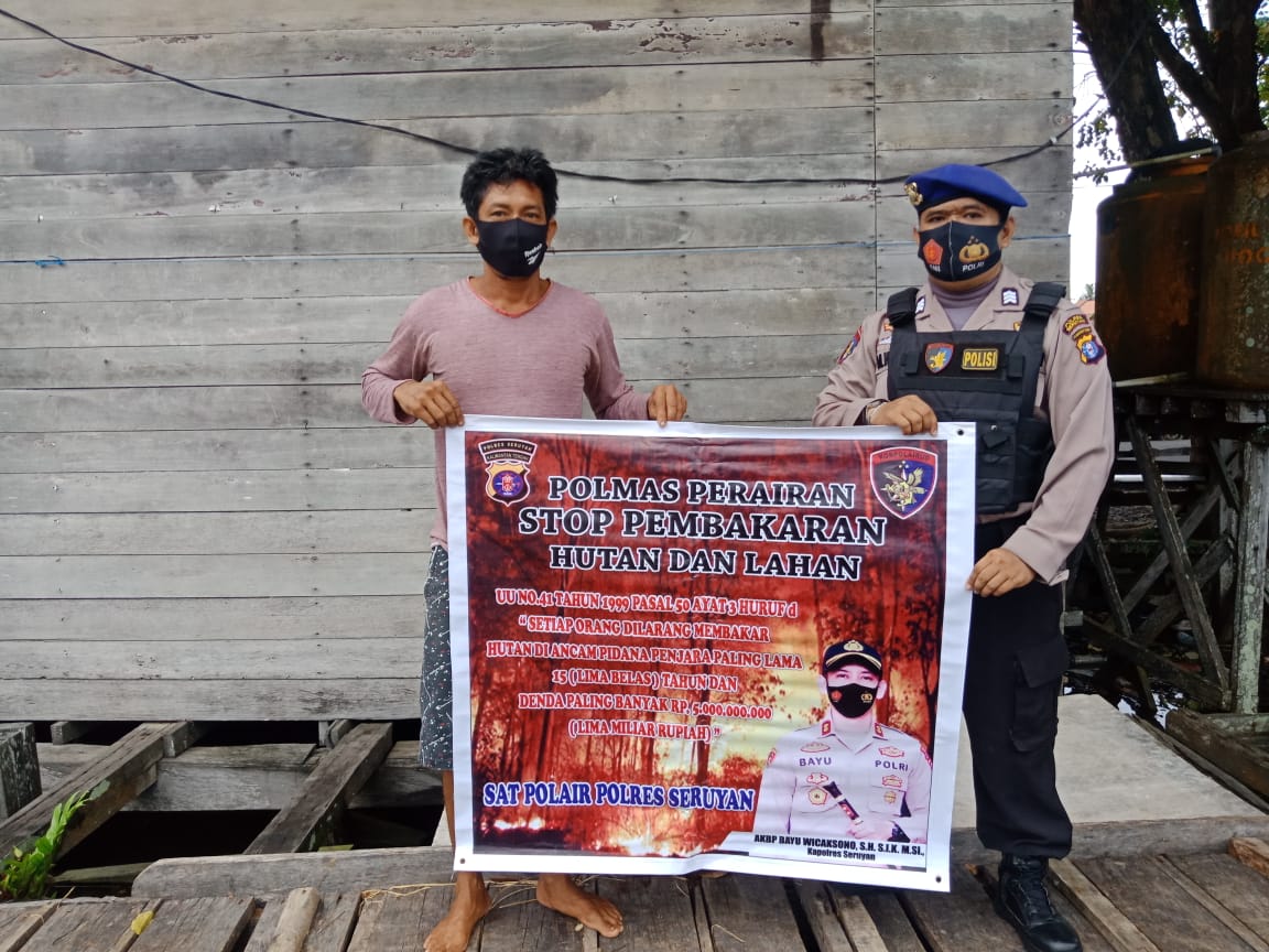 Kapolres Seruyan AKBP Bayu Wicaksono, S.H., S.I.K., M.Si, melalui Kasatpolairud Iptu Slamet Widodo mengatakan pihaknya Personil Satpolairud yang Melaksanakan kegiatan tersebut menyampaikan beberapa himbauan kepada masyarakat Agar tidak melakukan pembakaran Hutan dan Lahan dalam membuka Lahan pertanian serta mengakibatkan pencemaran lingkungan.