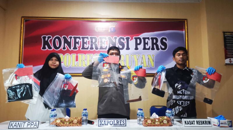 Kapolres Seruyan AKBP Hans Itta Papahit didampingi Kasatreskrim Iptu Markus LA Panjaitan, Kanit PPA Polres Seruyan Ipda Meldawati menggelar press release di Mapolres Seruyan, Kamis, 16 Januari 2024.